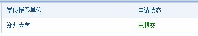 申请人需要完成“网上报名及要求”中的“①网上信息提交”后方可入场,由于现场人员较多,现场不提供设备供申请人进行①的操作。验证申请人是否完成此操作的方法是,点开提交学位申请模块,若看到下图则表示可以进行现场采集。请申请人将自己的名字包含在内的该界面截图、照相,存入手机或打印后作为凭证方可入场,若授予单位不是“776net必赢官网”或者申请状态非“已提交”的请自觉离场,自行寻找设备完善更正“上传电子照片、填写基本信息、提交学位申请”中的信息。